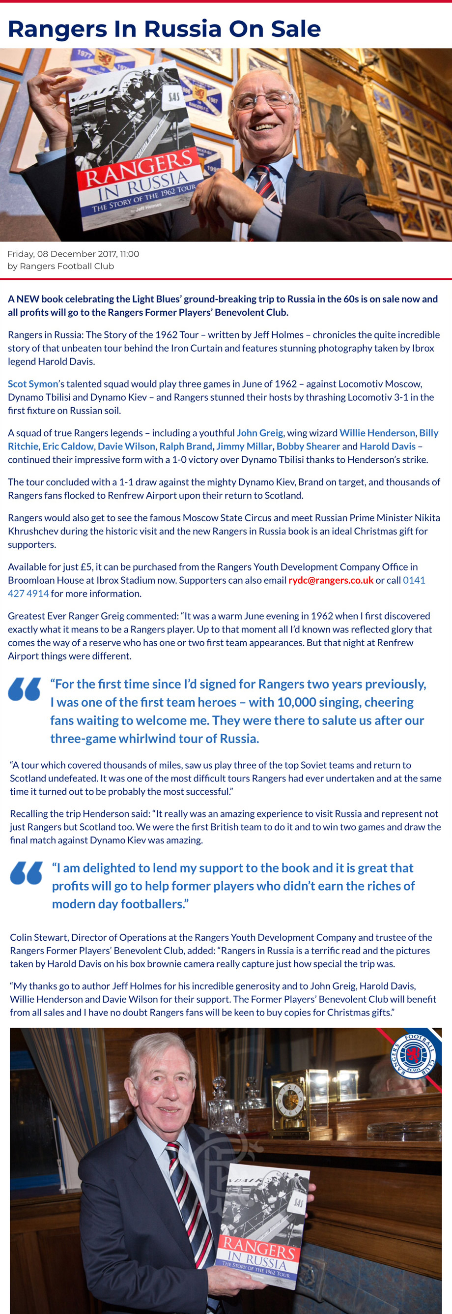 It was indeed a massive blow, but at least the veil of secrecy had been lifted. Rangers were heading off to Russia, although no one was quite sure what awaited them, Jim Baxter or no Jim Baxter!